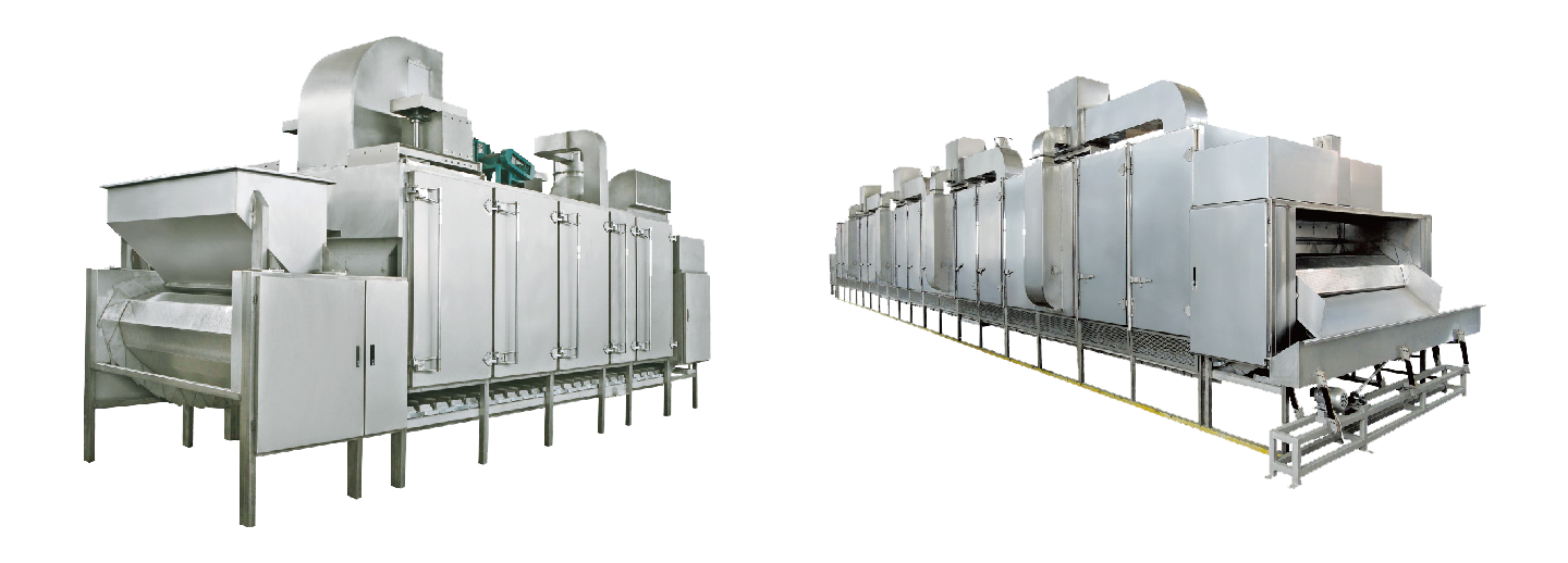 采用智能化控制系統(tǒng)循環(huán)熱風方式進行穿透式烘烤;物料厚度、行進速度自動可調(diào),各單元溫度獨立調(diào)整;后置獨立冷卻區(qū),無需單獨冷卻;模塊式結(jié)構(gòu),產(chǎn)量提高亦無須變更設(shè)備;熱源多元化,可使用天然氣、液化氣、導熱油、電等。